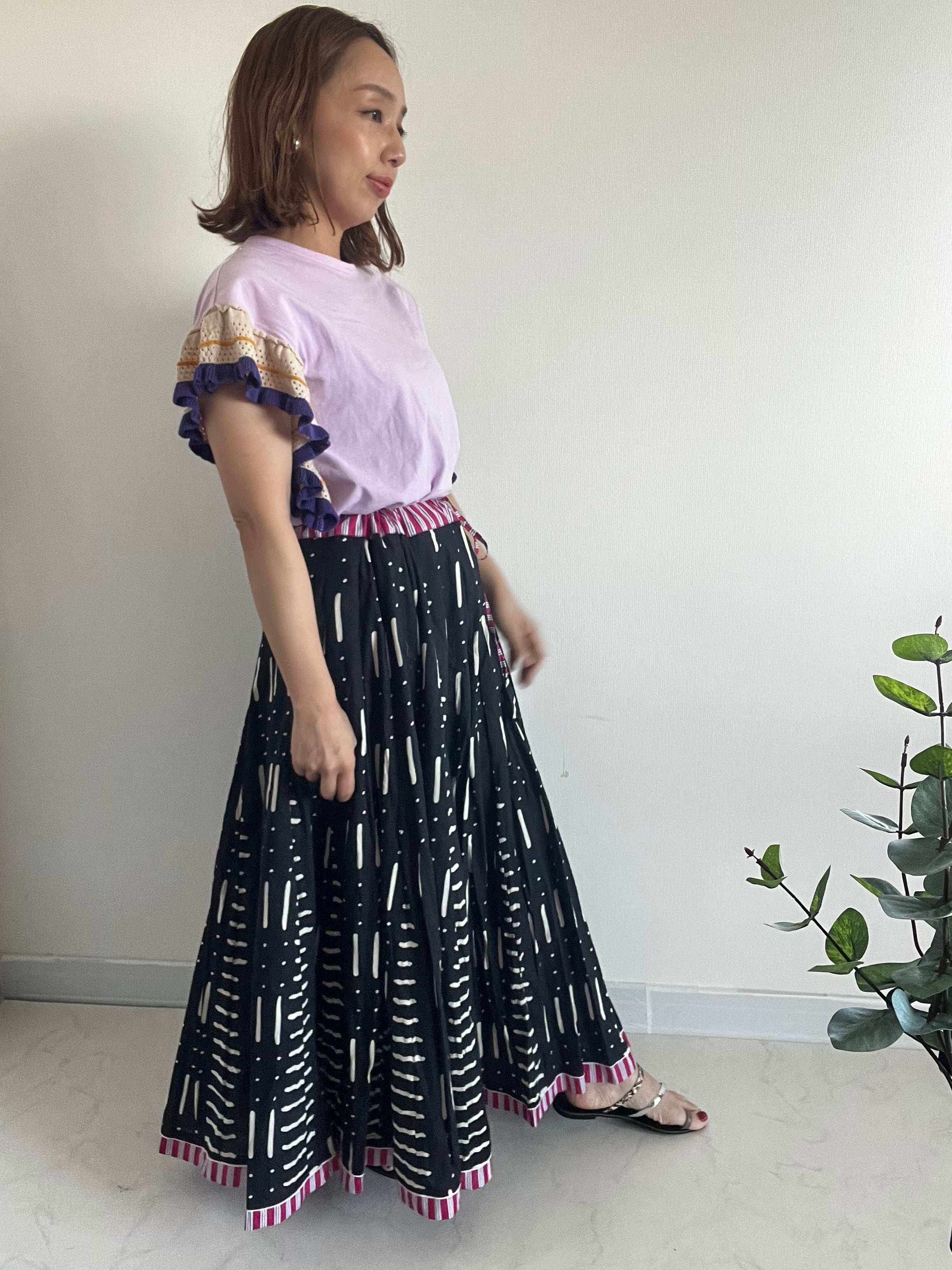 パネル状の生地を32枚はぎ合わせた、フルサークルのガーグラースカートです