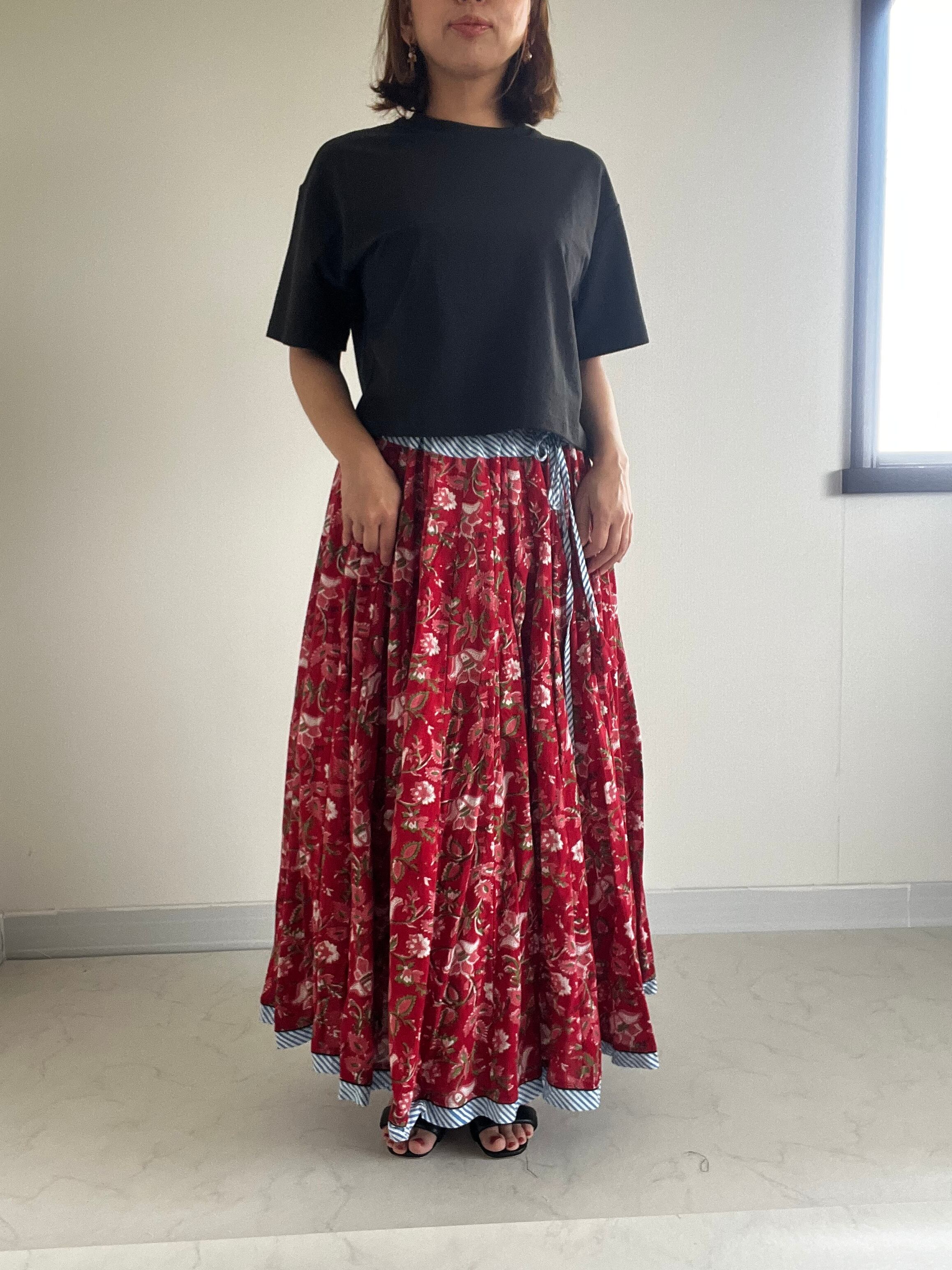 パネル状の生地を32枚はぎ合わせた、フルサークルのガーグラースカートです