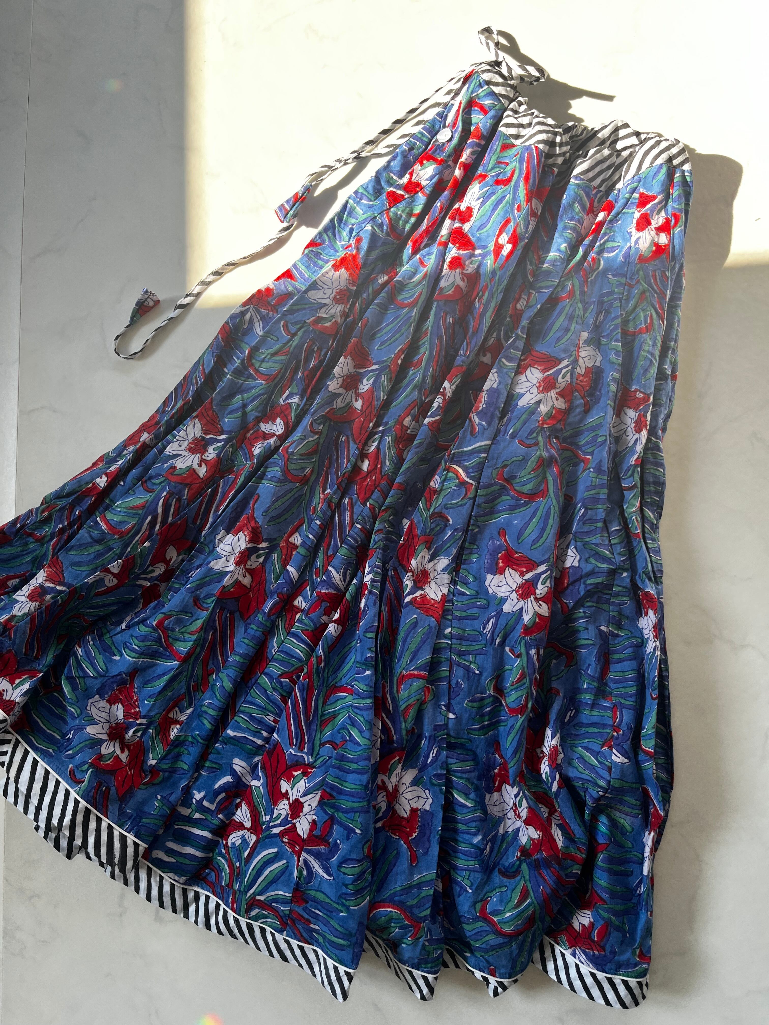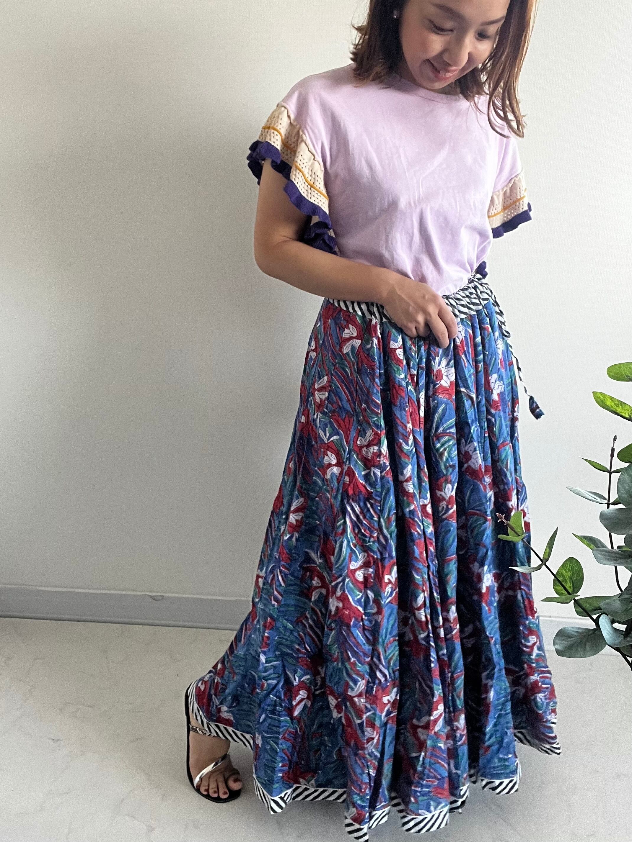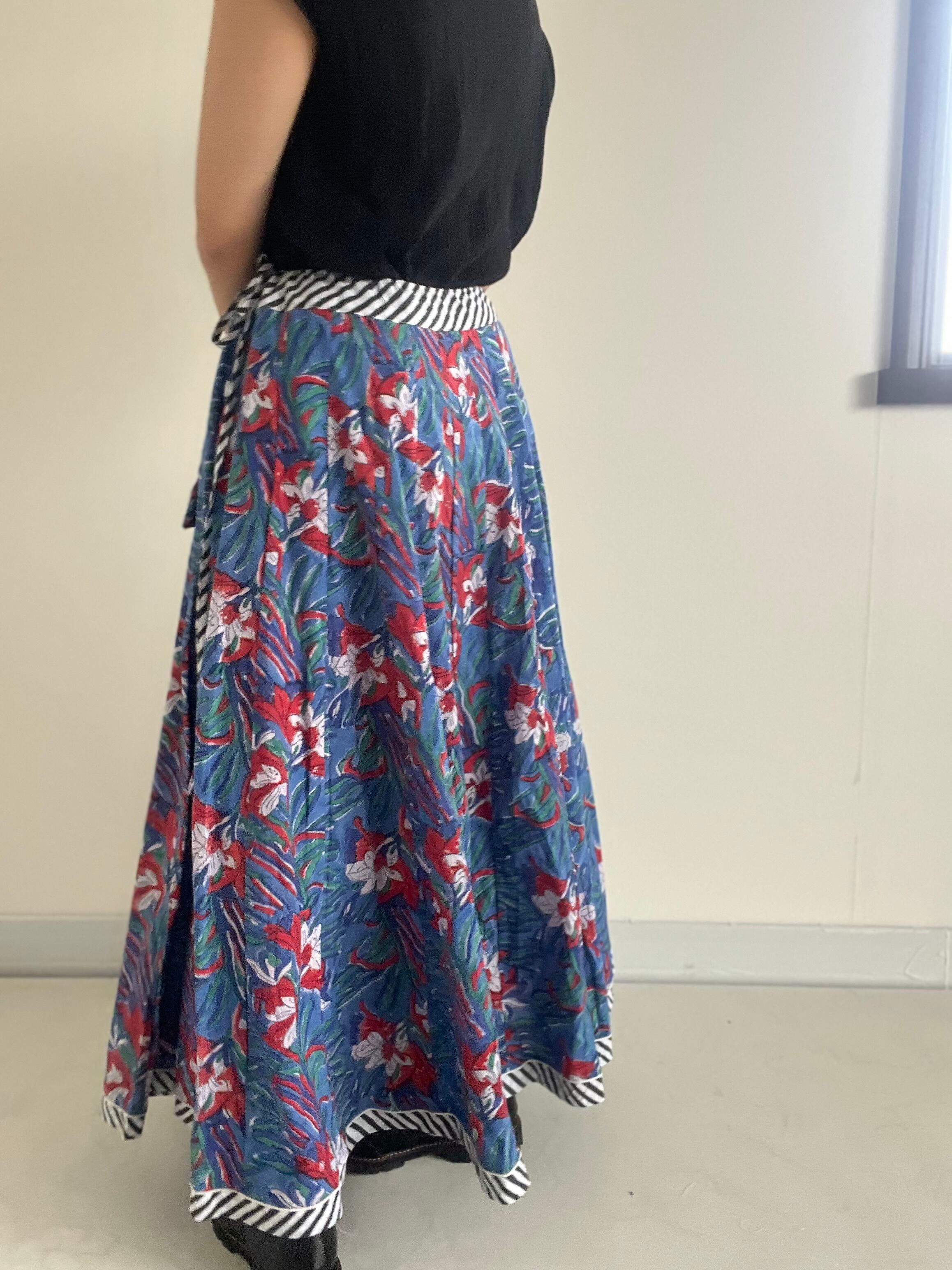 パネル状の生地を32枚はぎ合わせた、フルサークルのガーグラースカートです