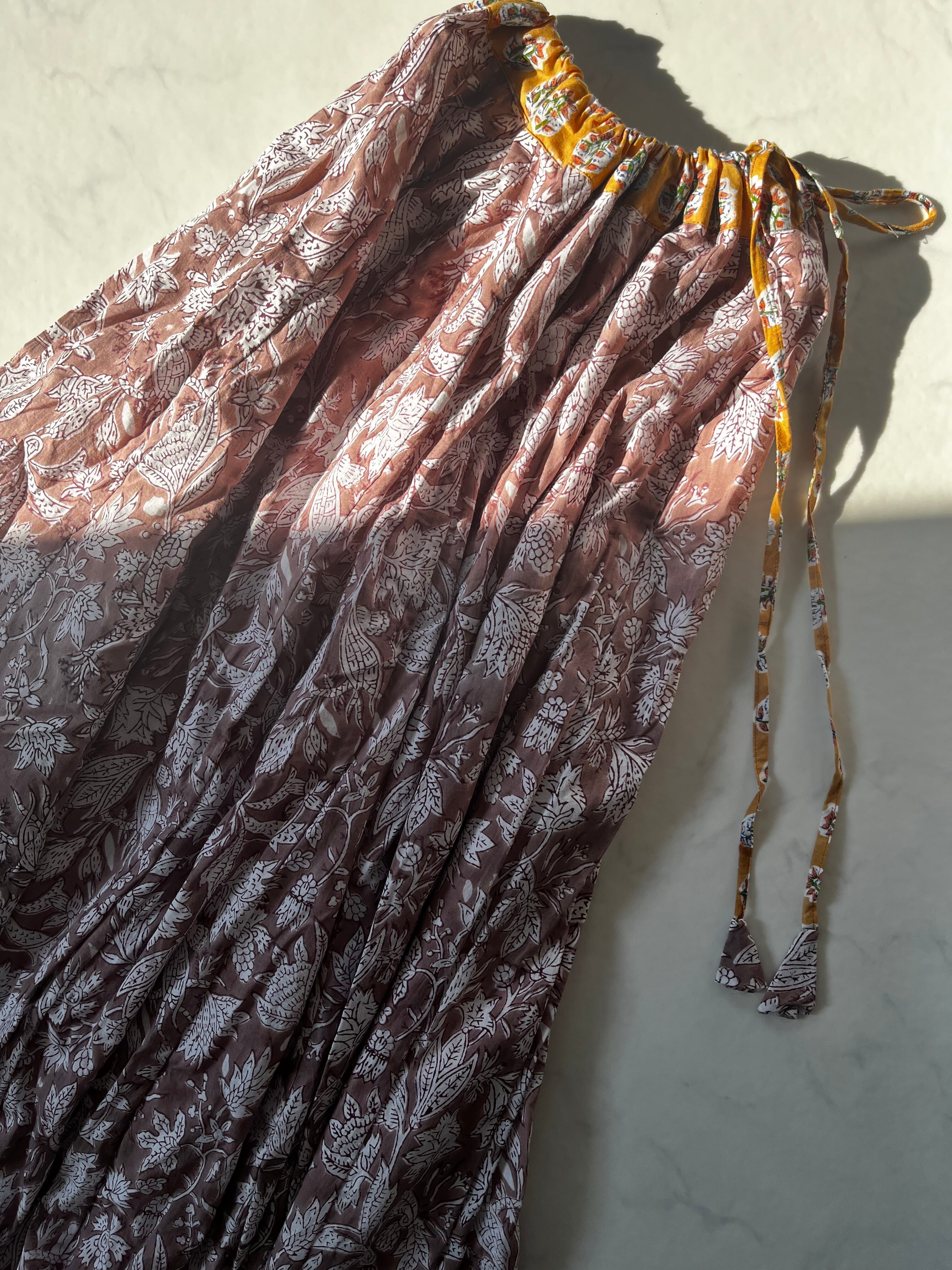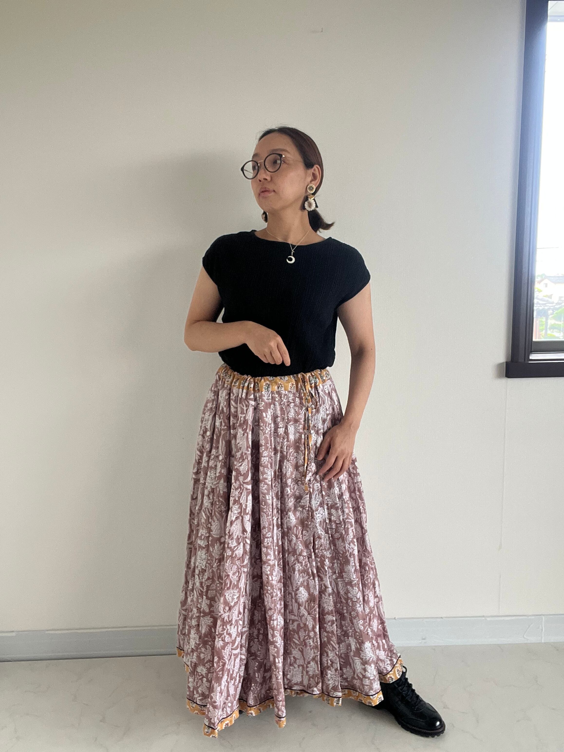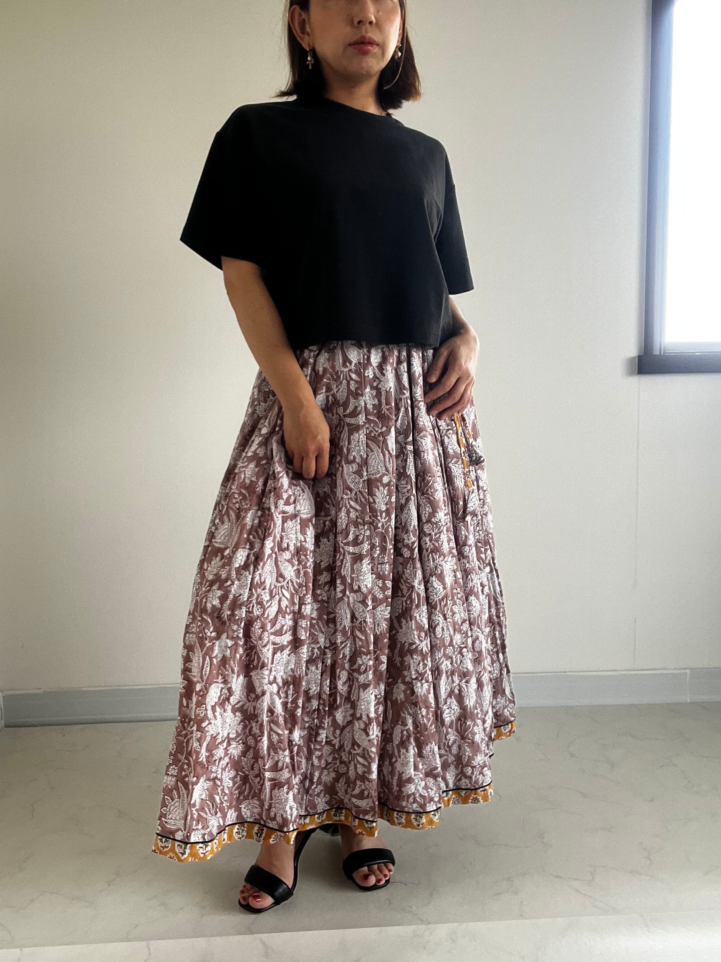 パネル状の生地を32枚はぎ合わせた、フルサークルのガーグラースカートです