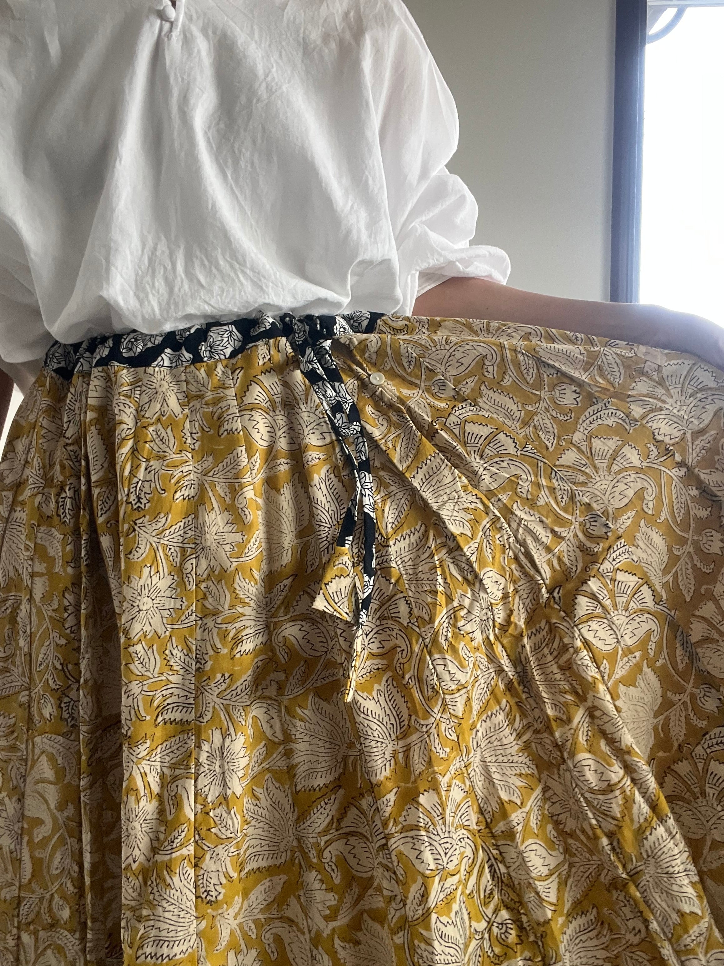 厳選されたブロックプリント生地を約6m贅沢に使用。