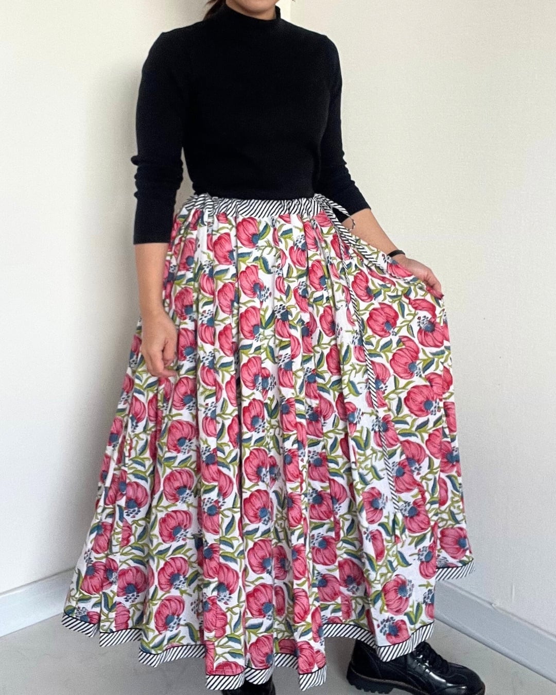 厳選されたブロックプリント生地を約6m贅沢に使用。