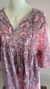インド綿ワンピース|ピンクグレー