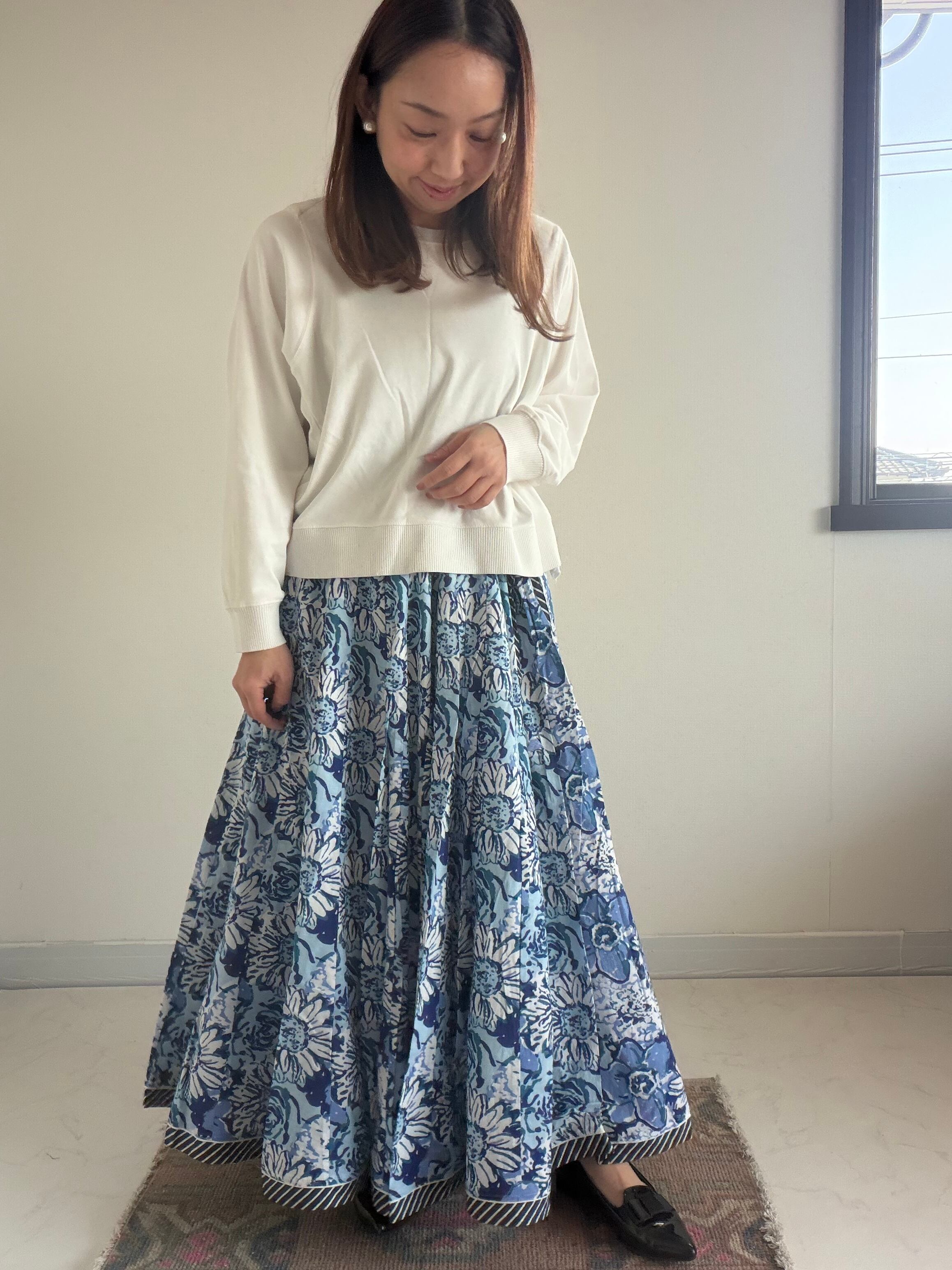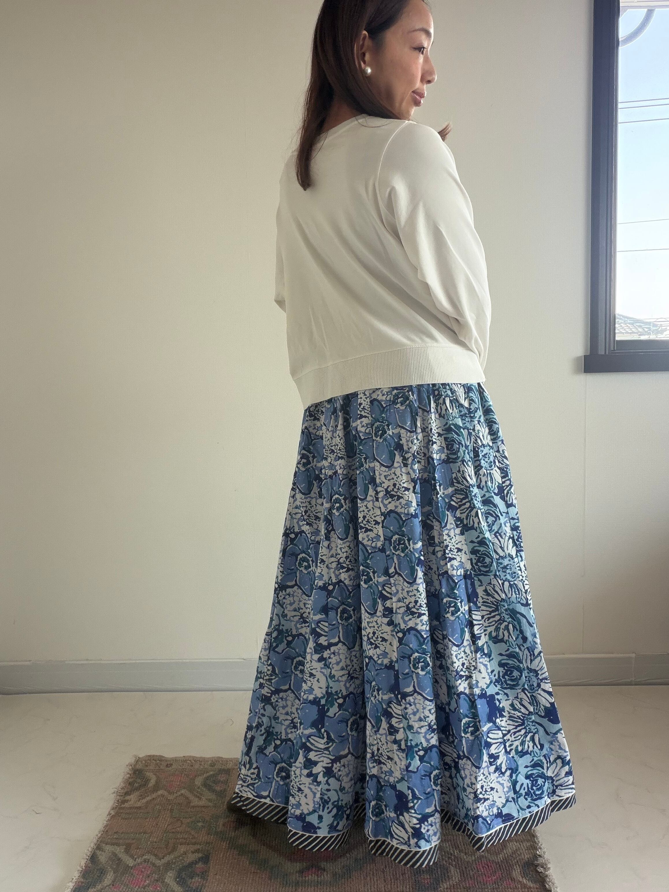 ブロックプリントは、インドの職人が木版を一つひとつ手で押して染め上げる伝統技法です。