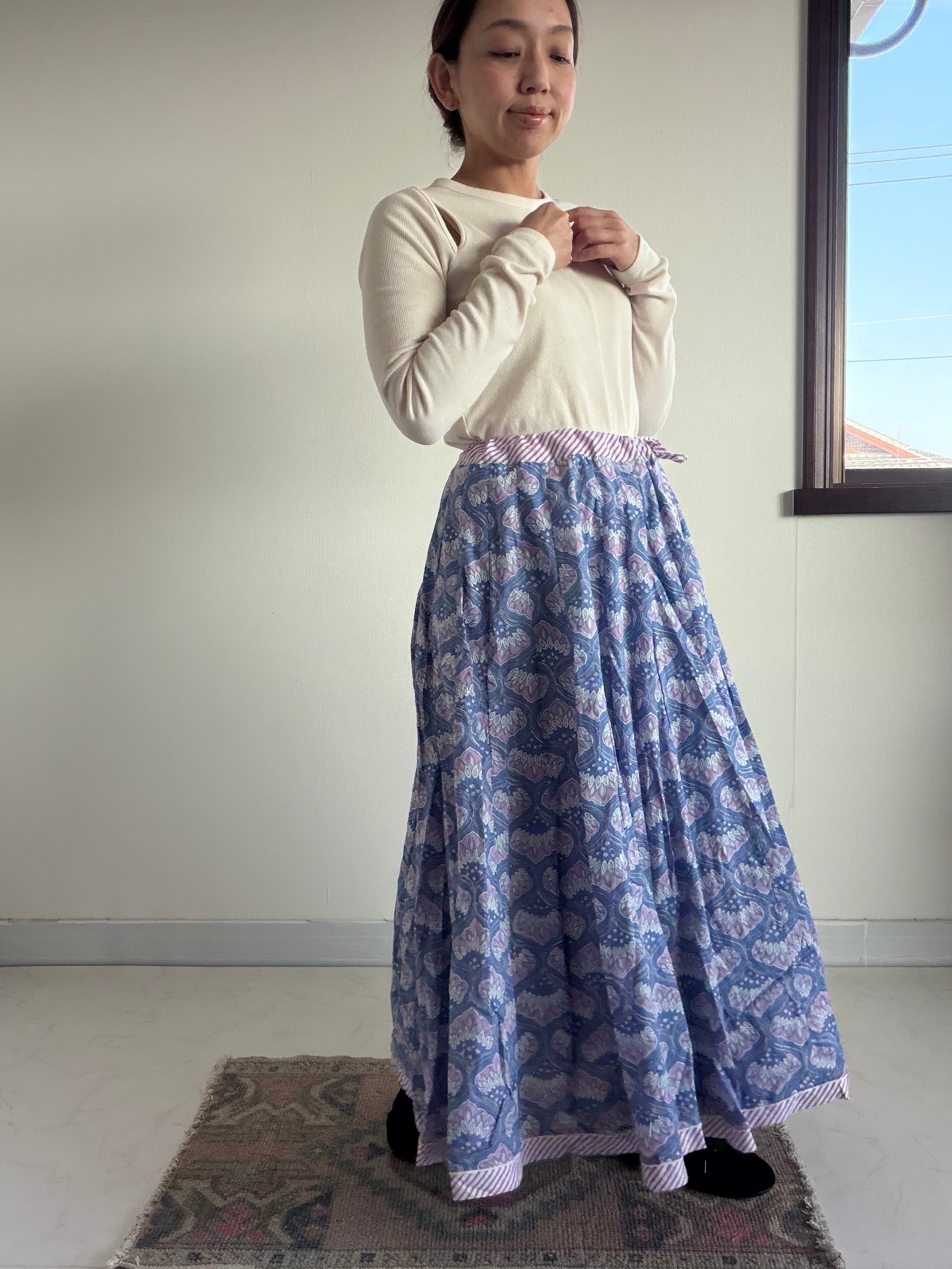 厳選されたブロックプリント生地を約6m贅沢に使用。