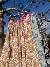 パネル状の生地を32枚はぎ合わせた、フルサークルのガーグラースカートです。