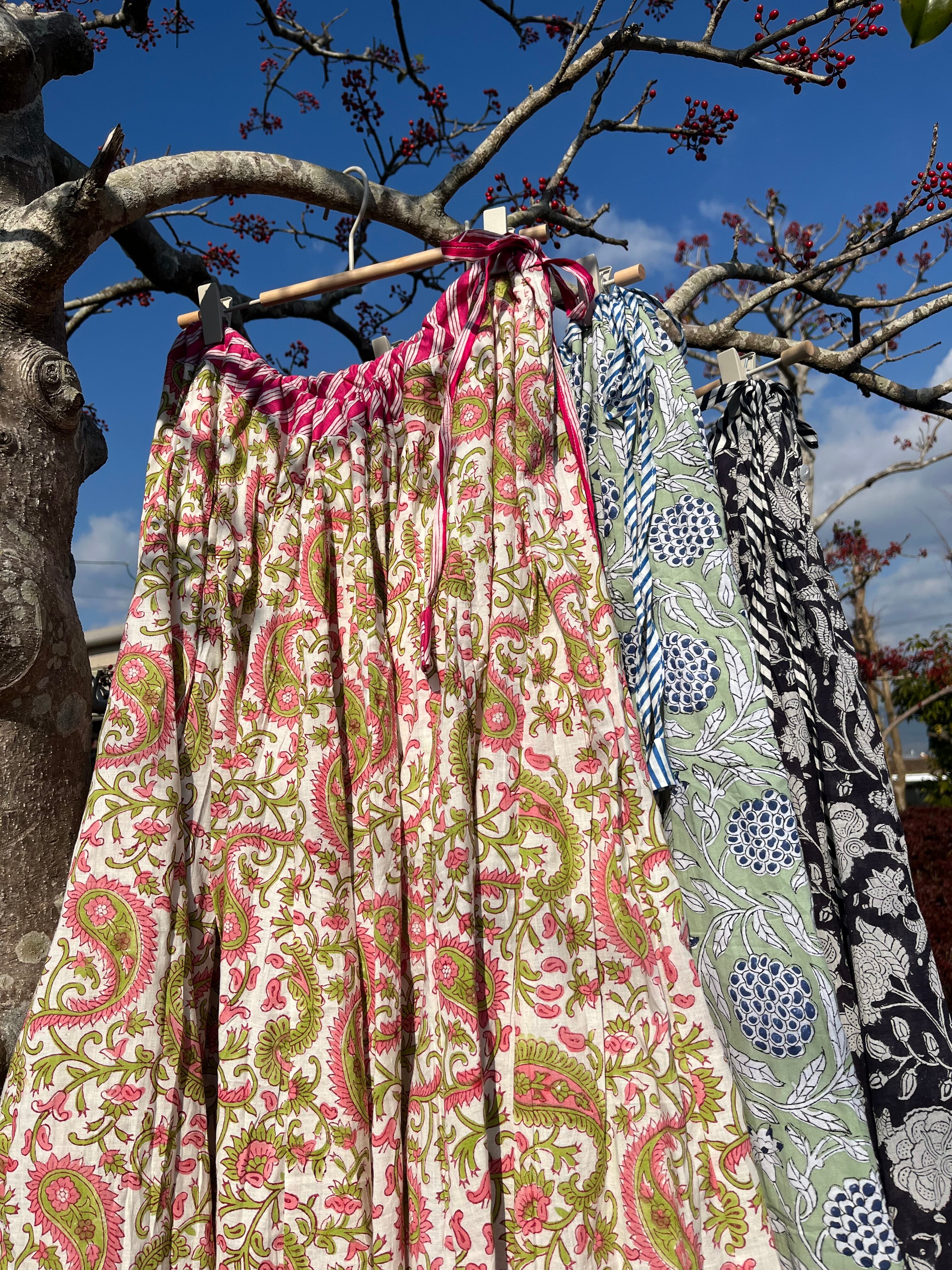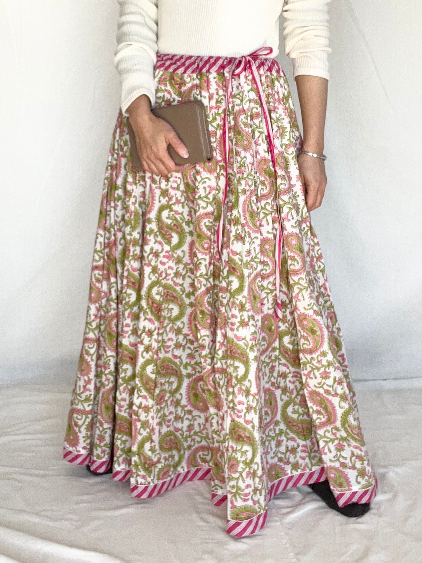 ガーグラースカート【ペイズリー・ピンク×イエローグリーン】です。