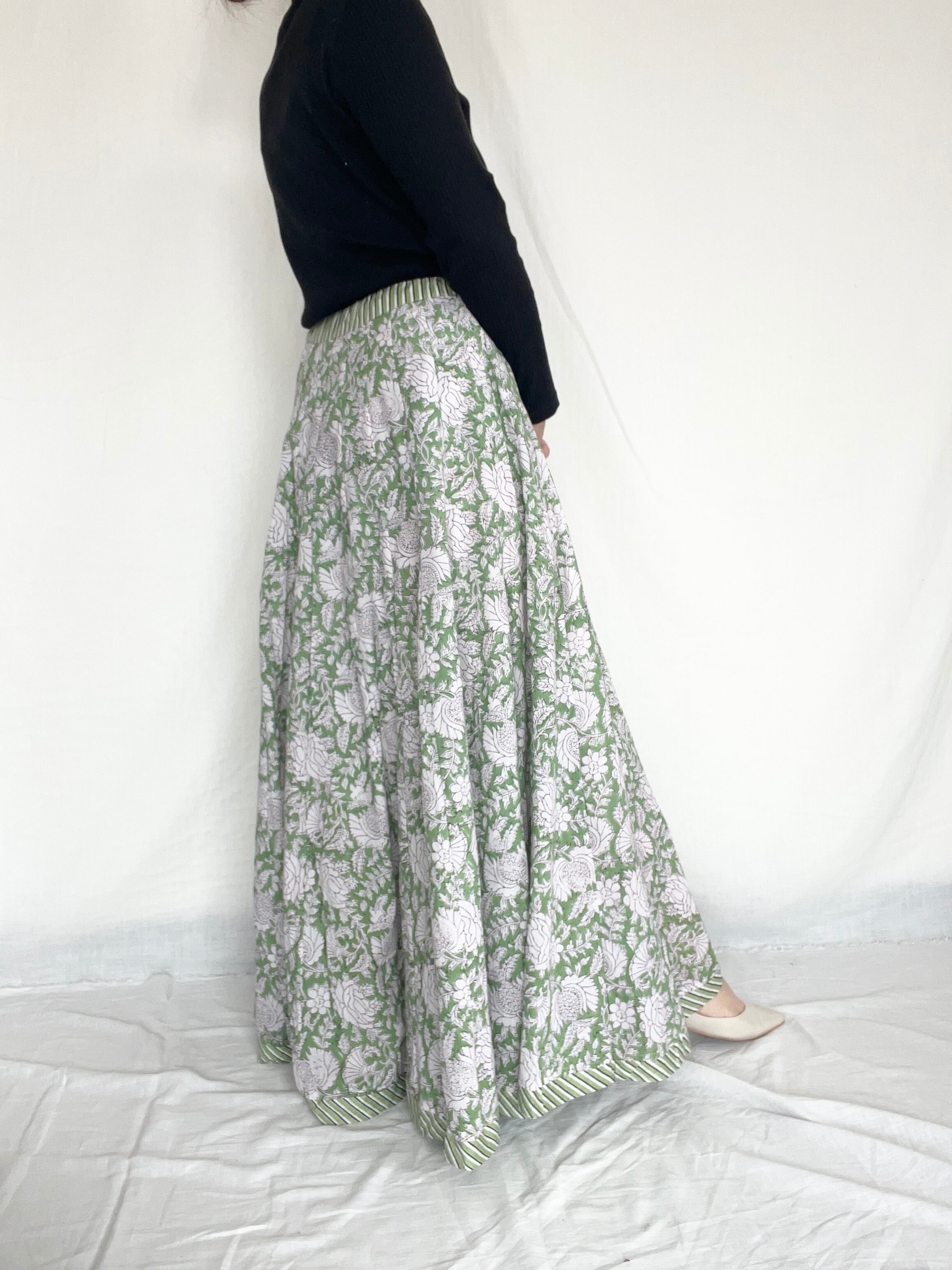 パネル状の生地を32枚はぎ合わせた、フルサークルのガーグラースカートです
