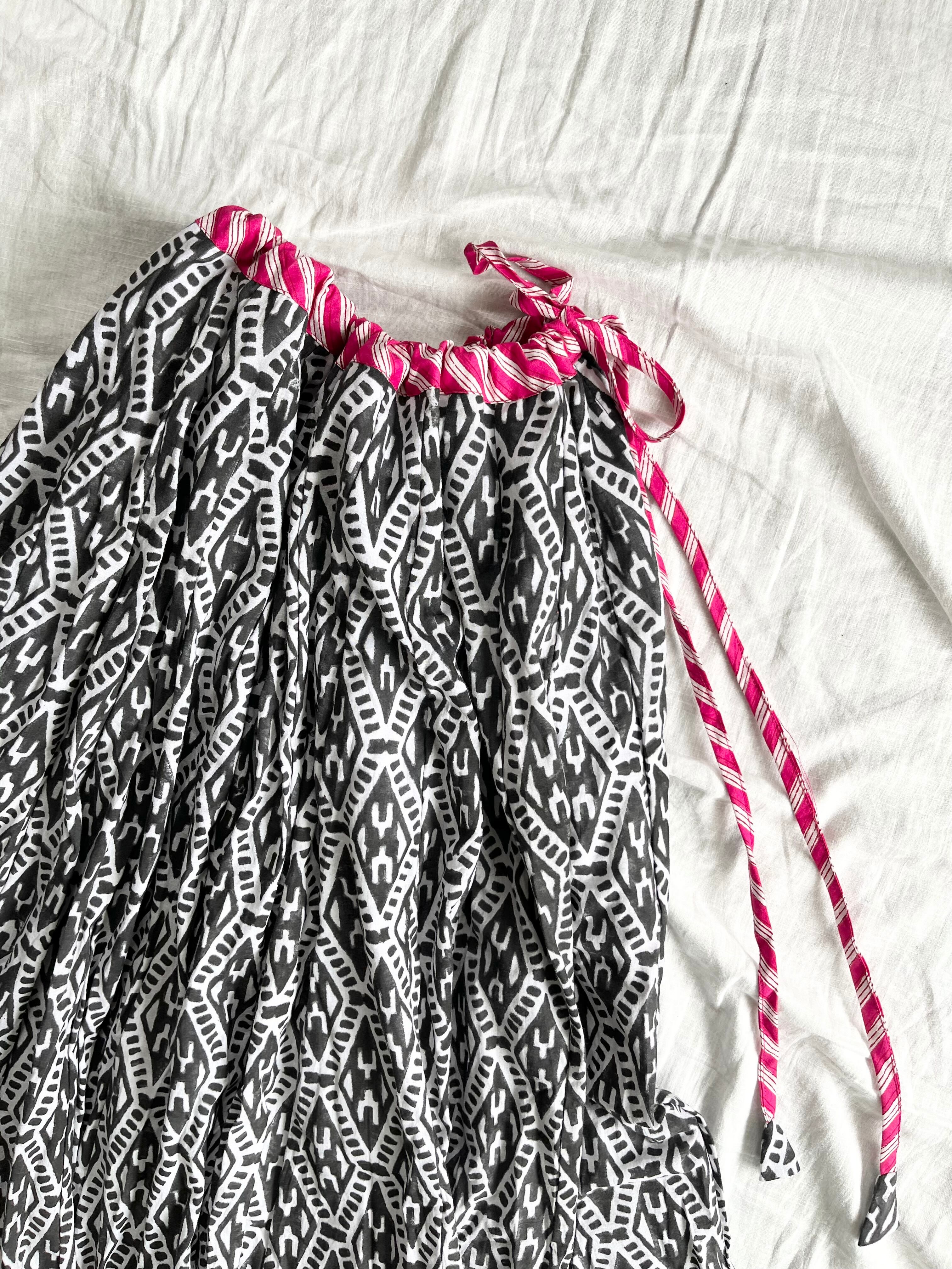 ハンドブロックプリントで描かれた幾何学模様がクールなデザインの1着