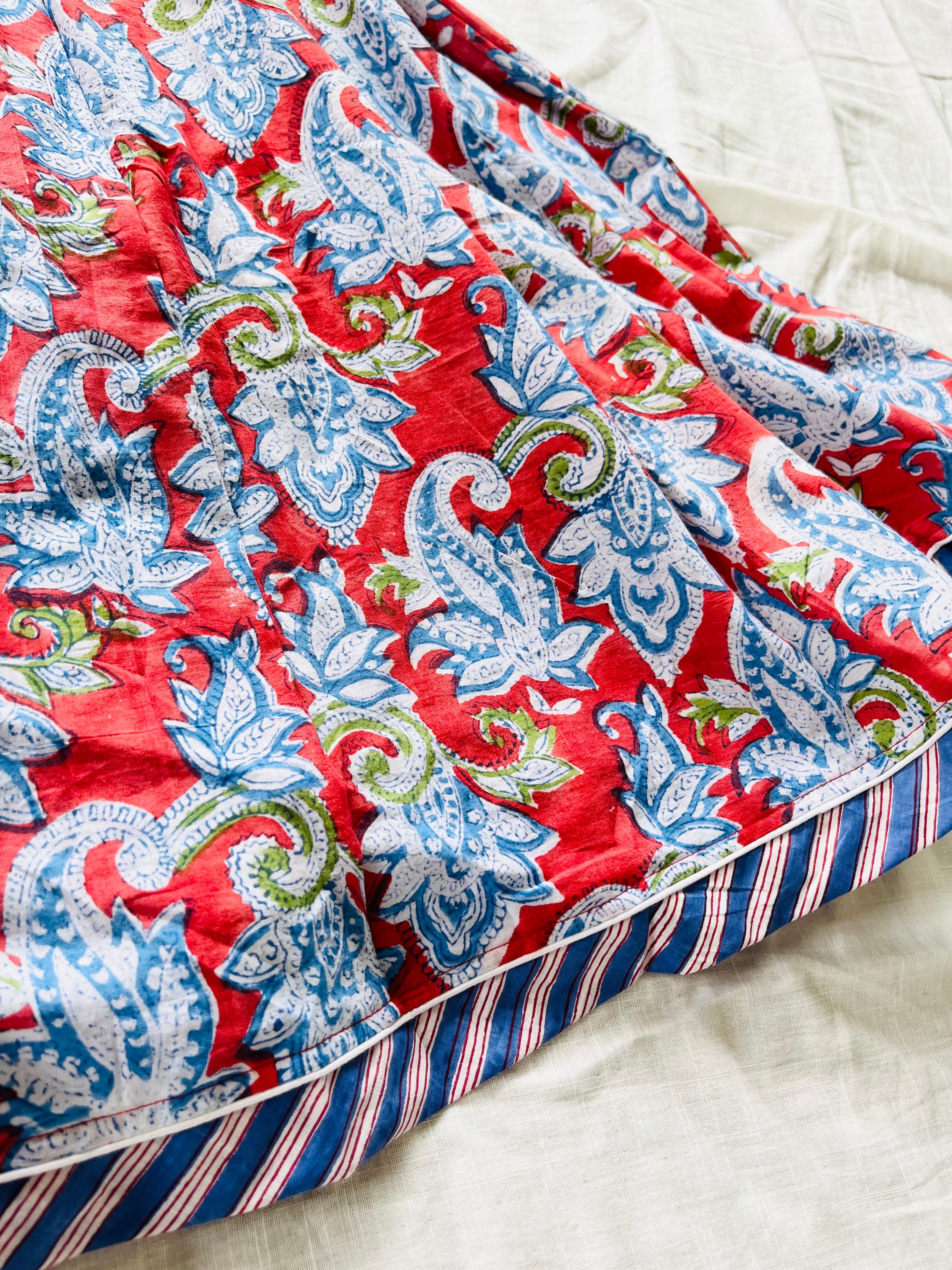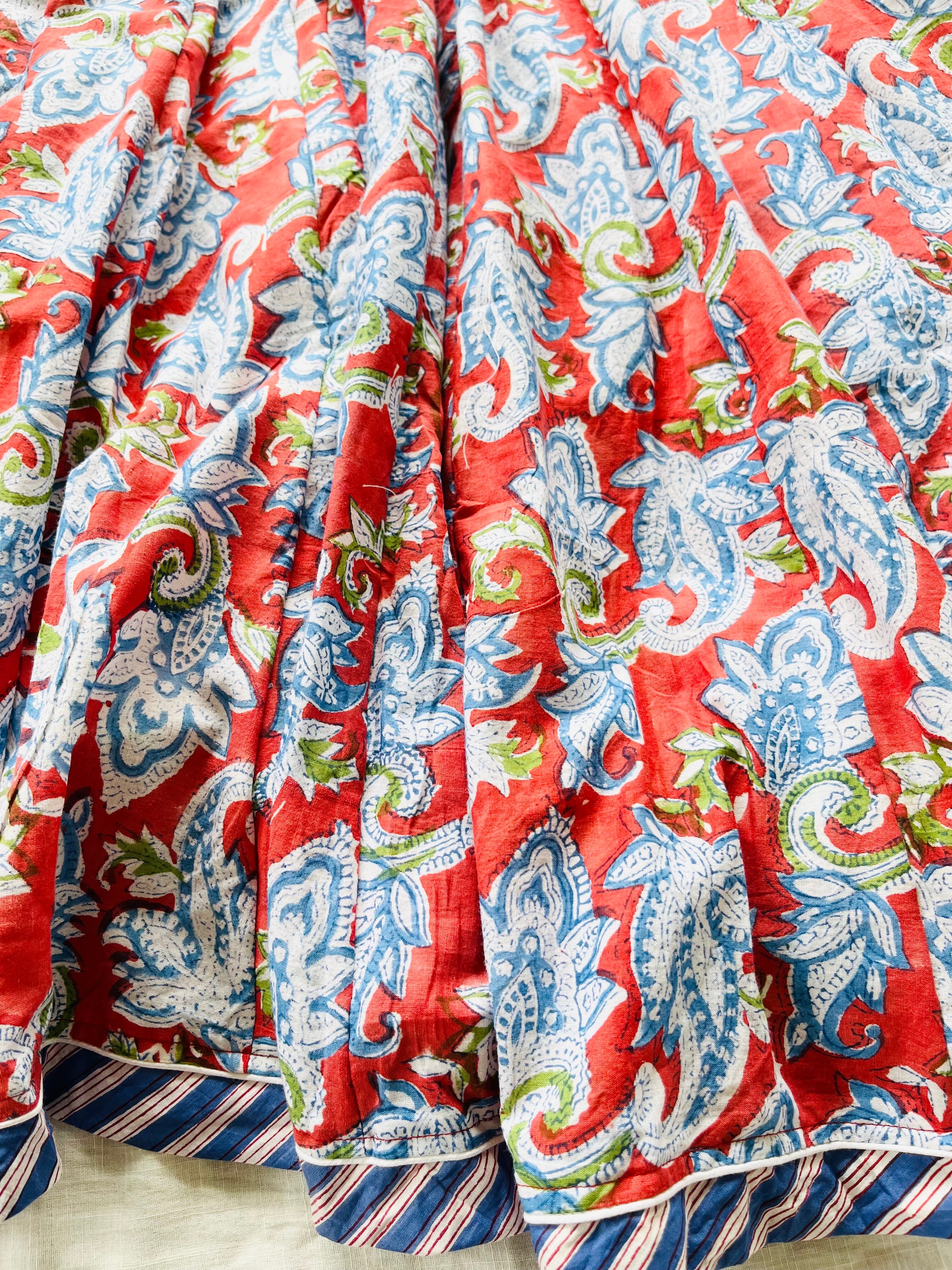パネル状の生地を32枚はぎ合わせた、フルサークルのガーグラースカートです。