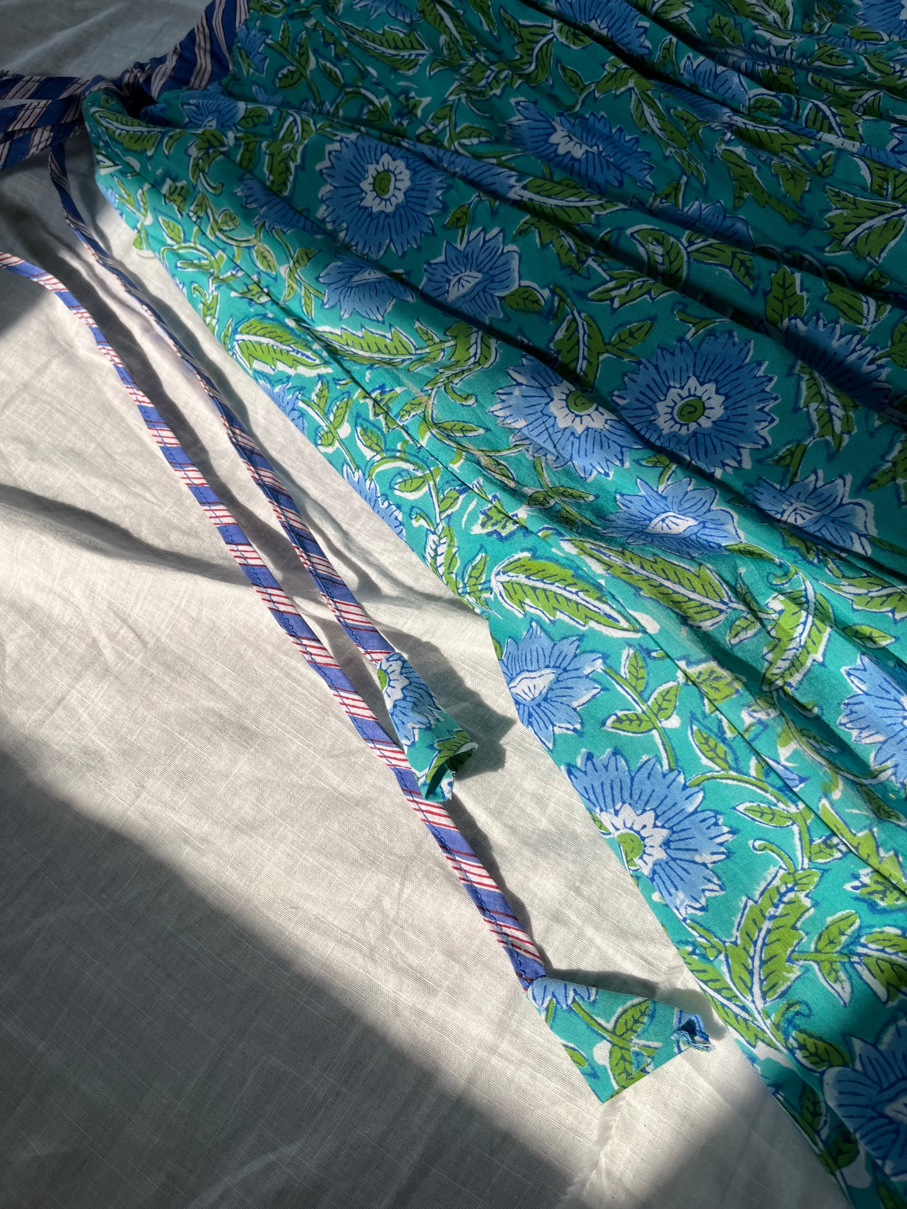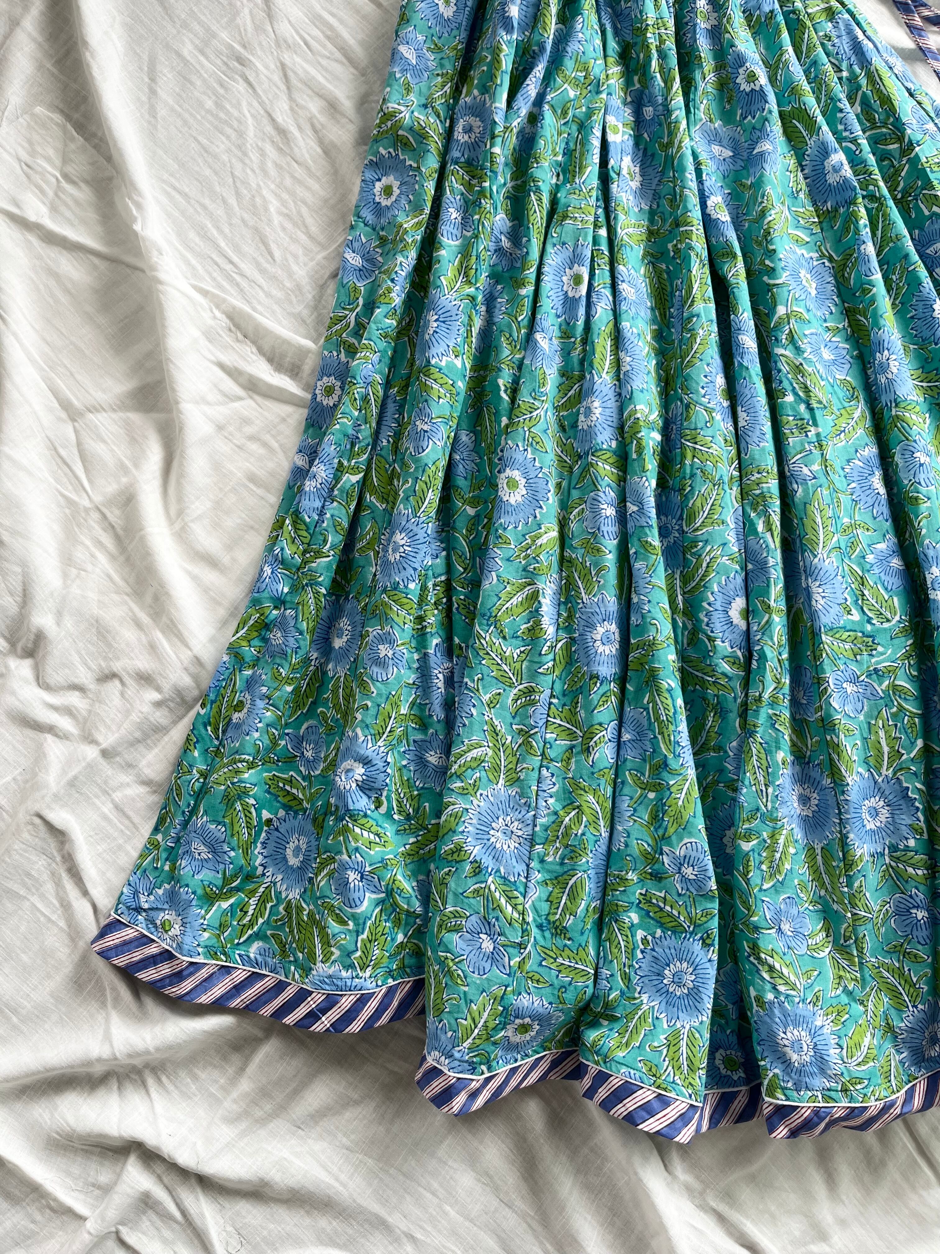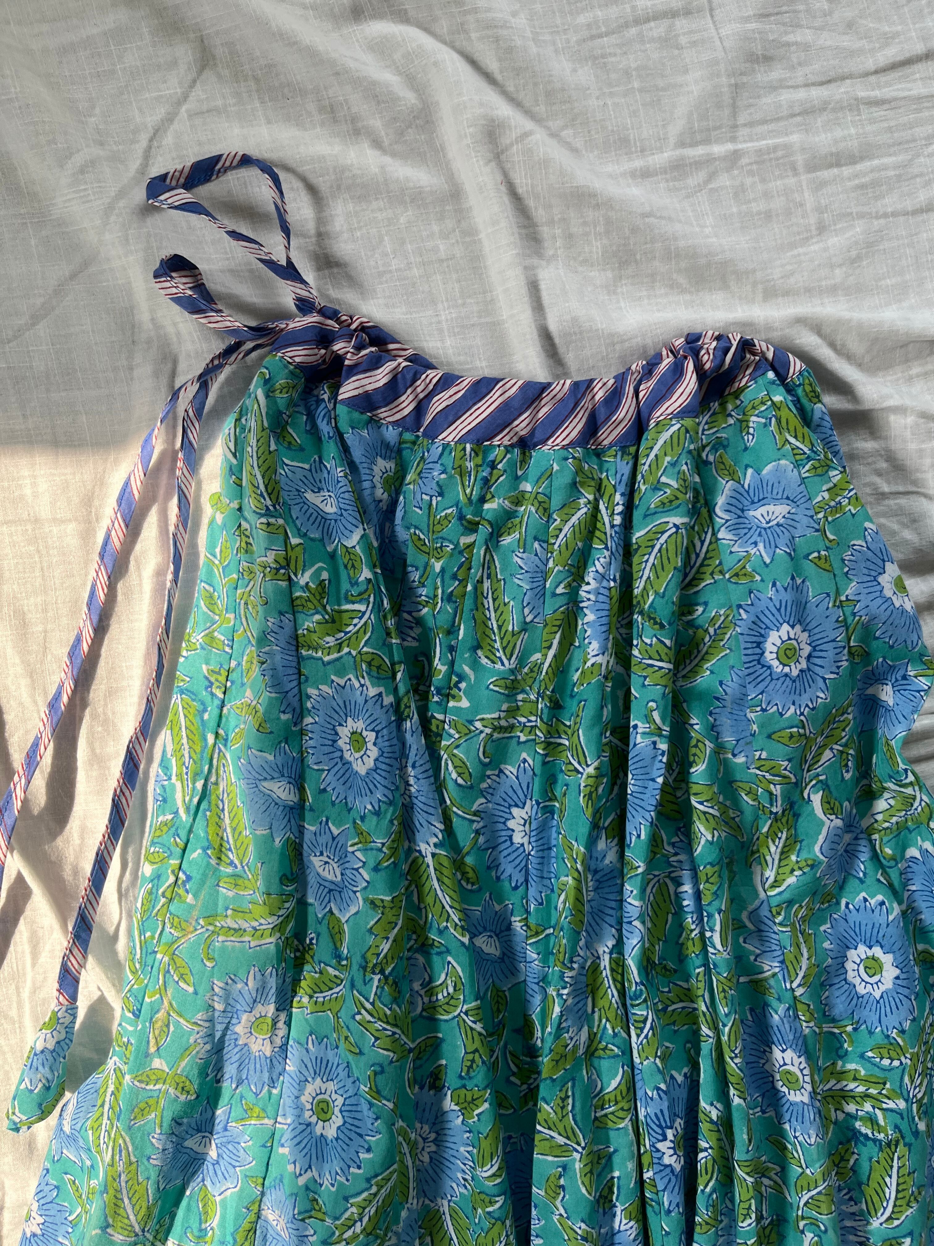 パネル状の生地を32枚はぎ合わせた、フルサークルのガーグラースカートです。