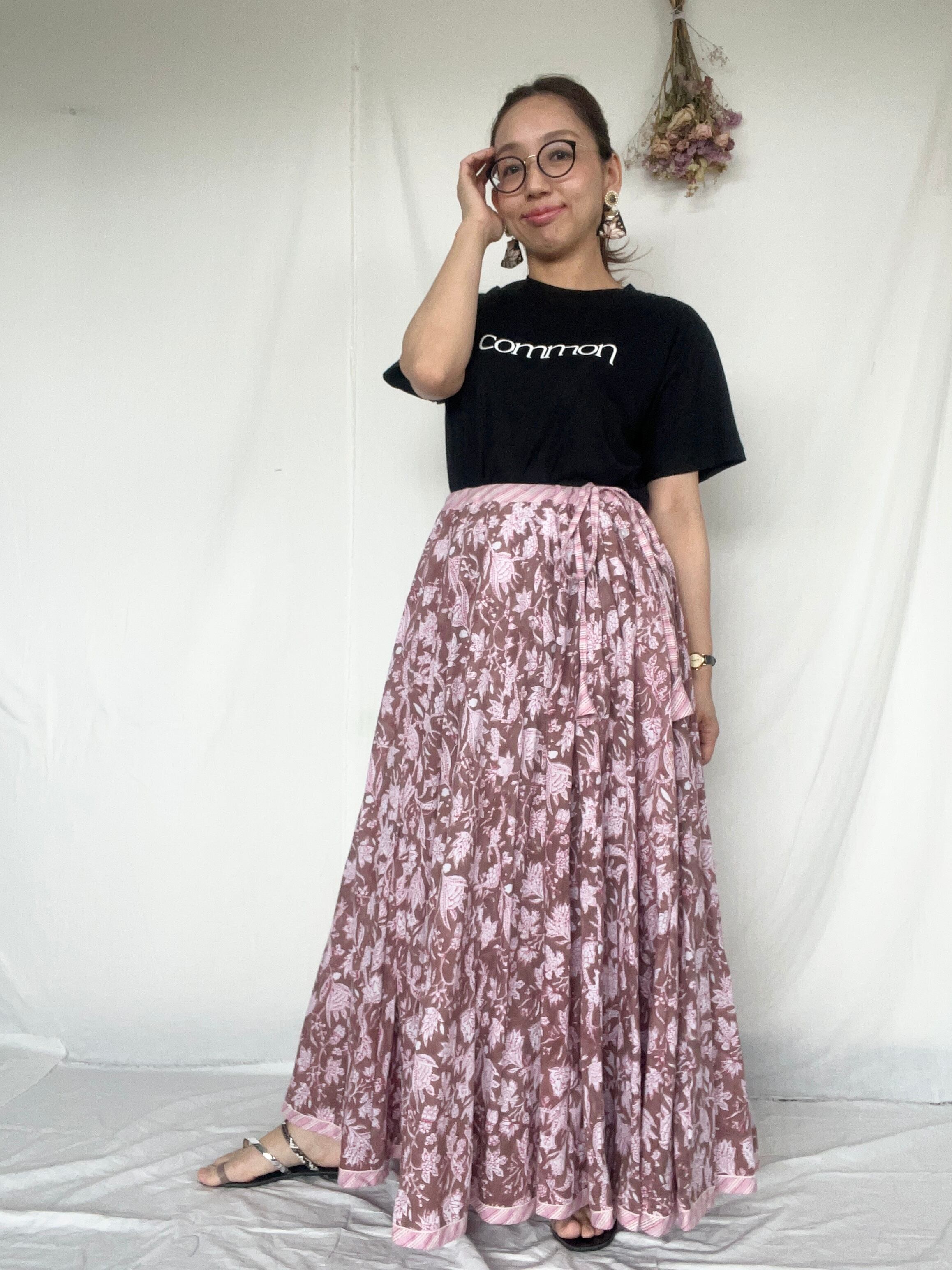 ハンドブロックプリントの花柄がシンプルだけど、深みのある色合いで、とっても可愛い子♡