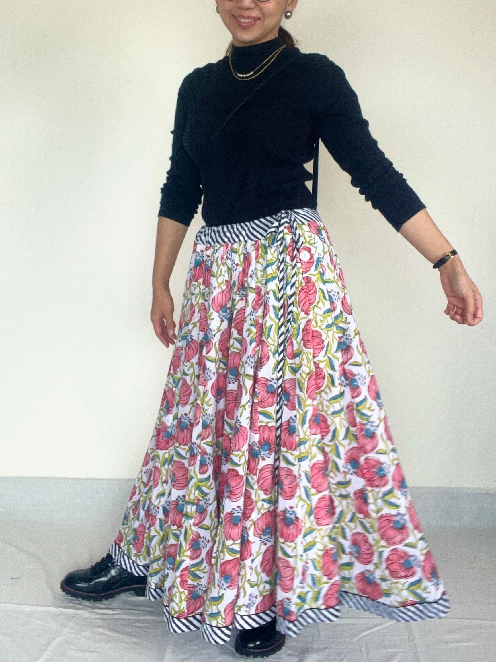 パネル状の生地を32枚はぎ合わせた、フルサークルのガーグラースカートです。
