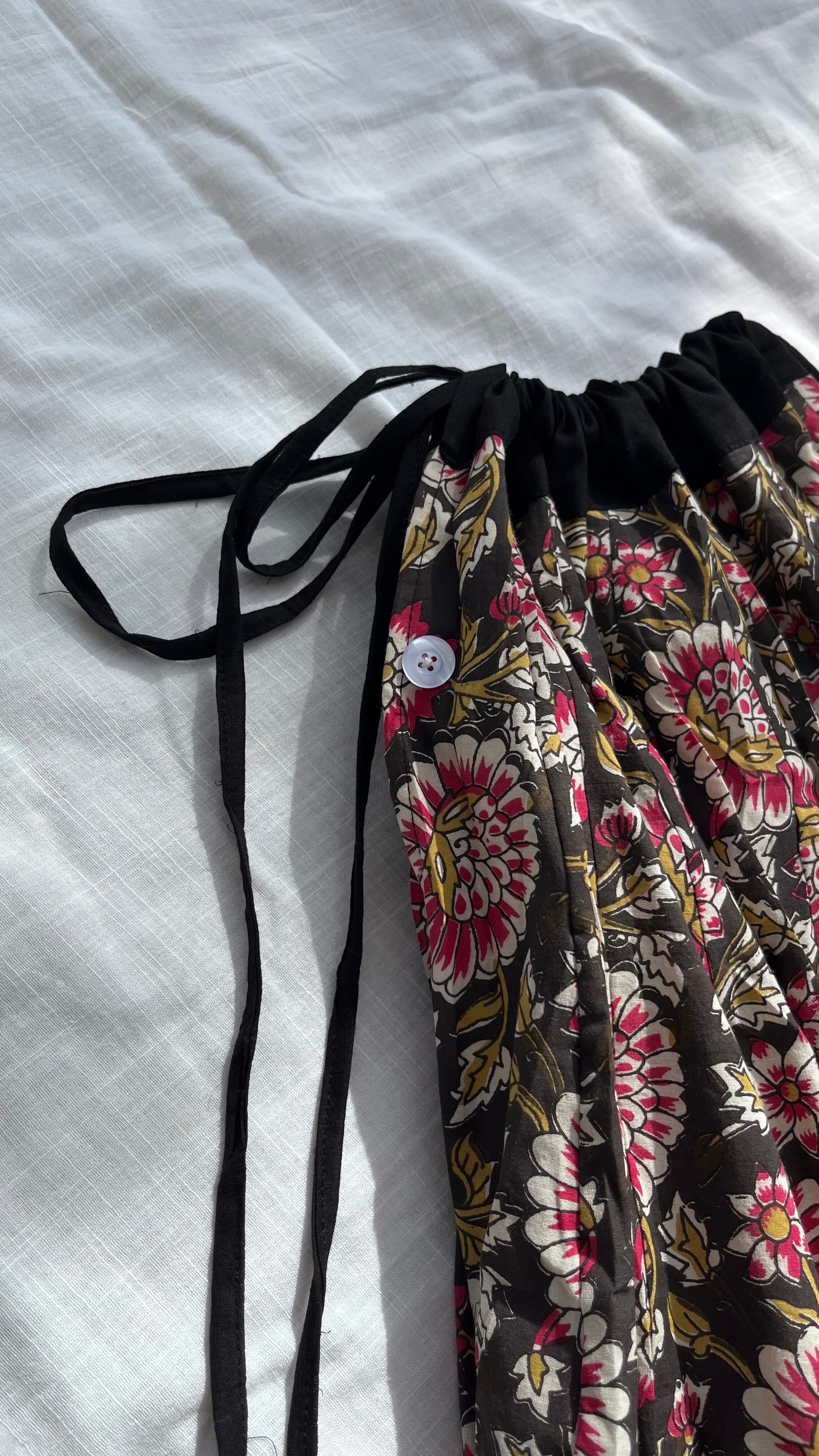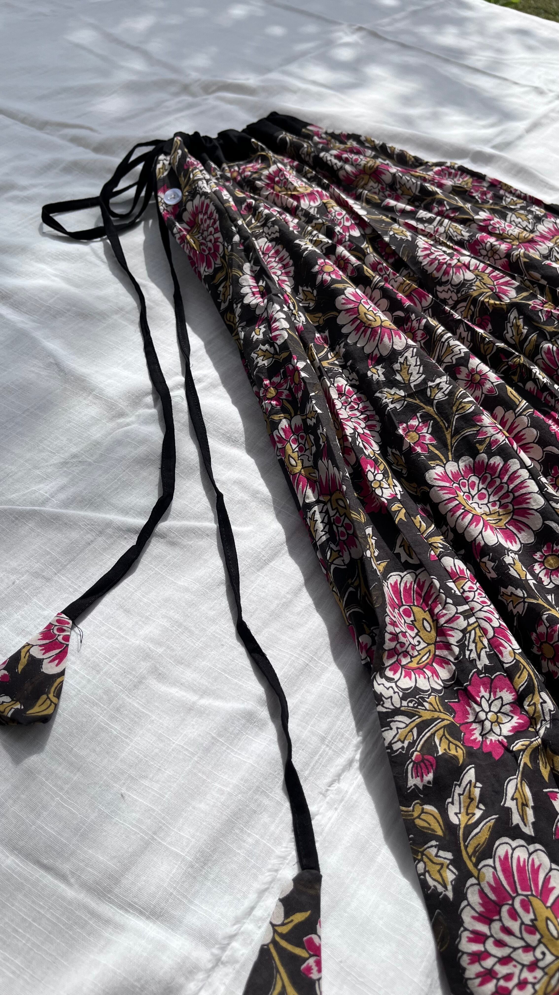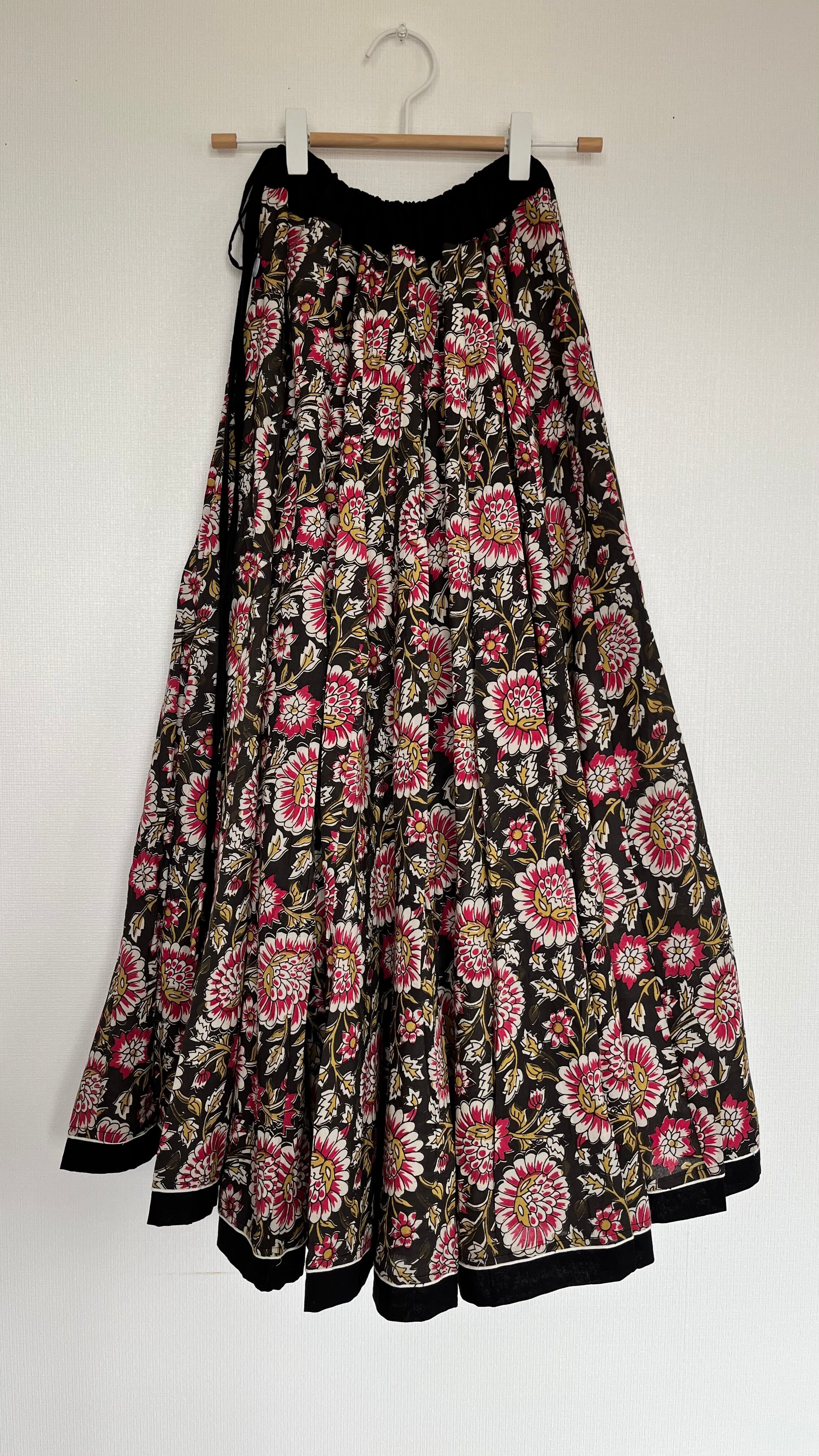 パネル状の生地を32枚はぎ合わせた、フルサークルのガーグラースカートです。