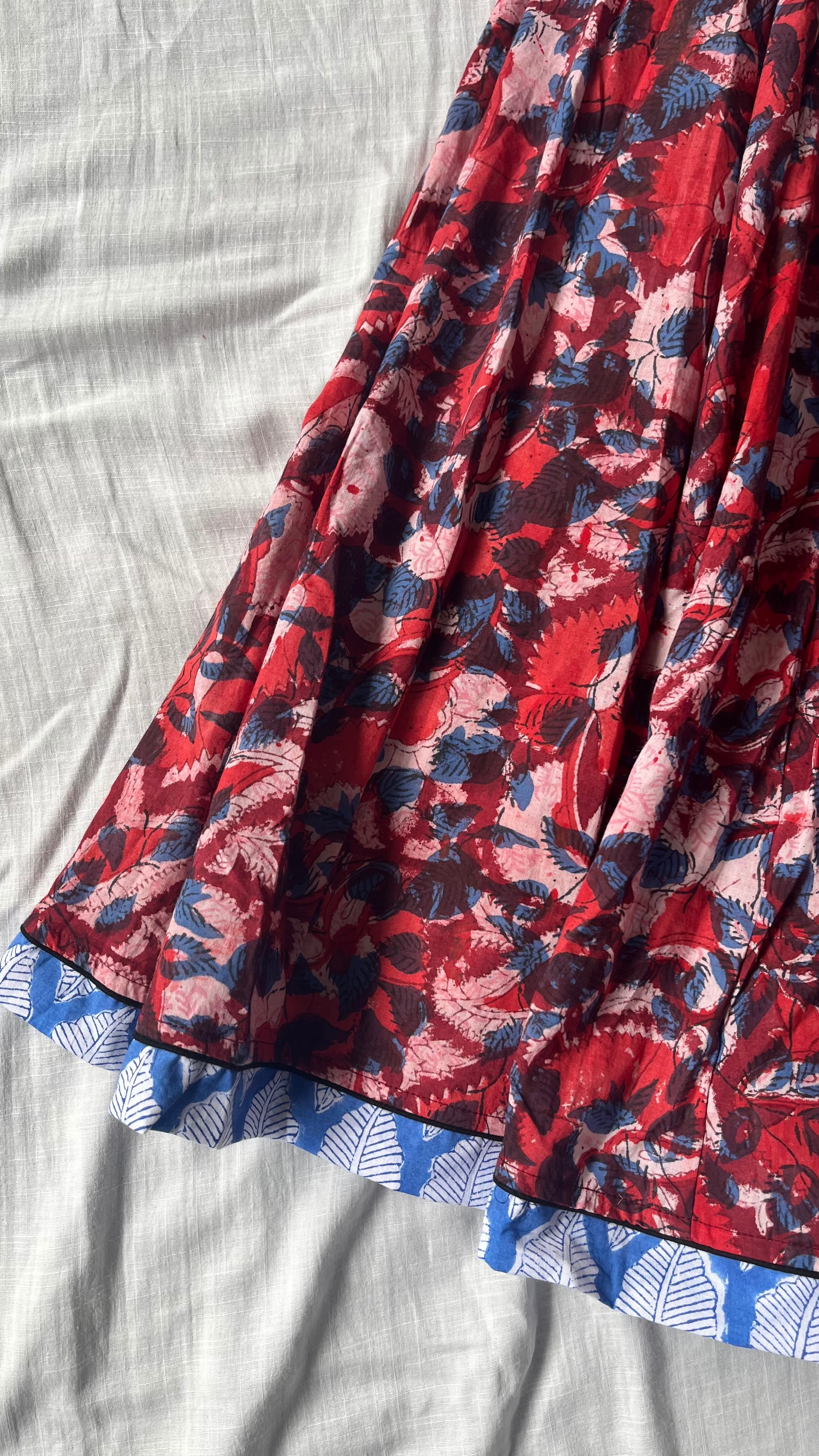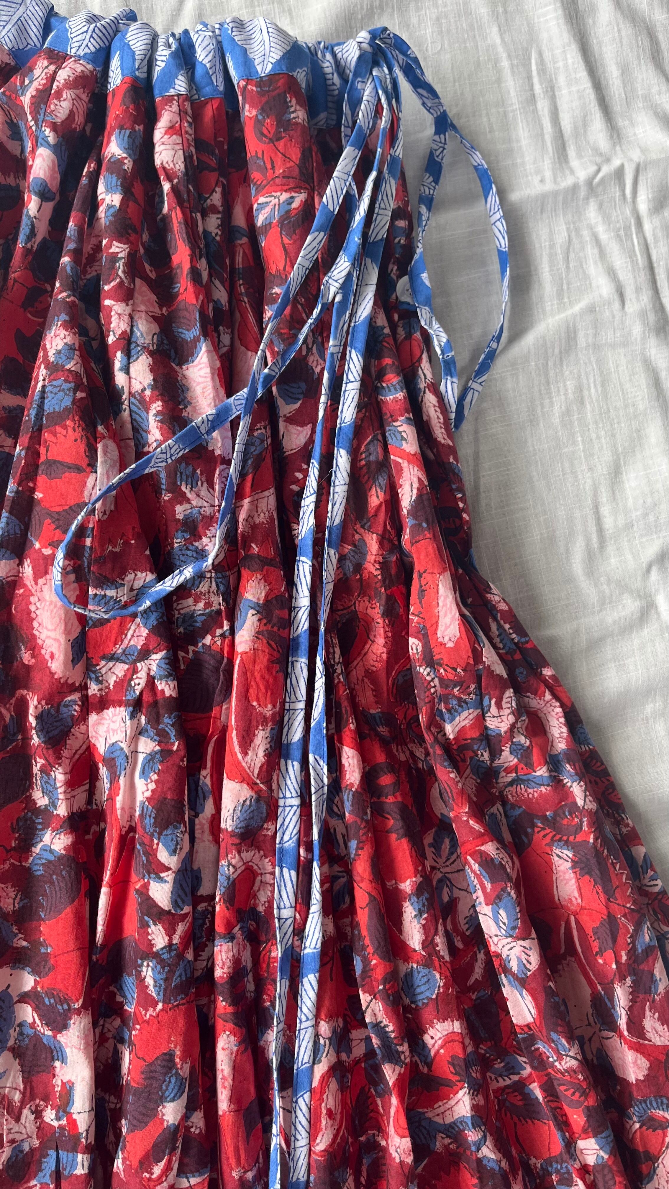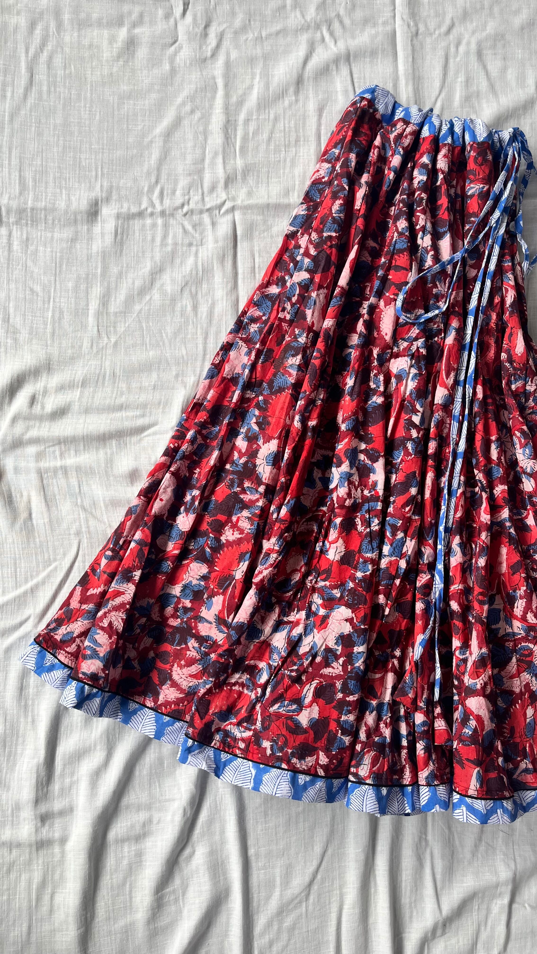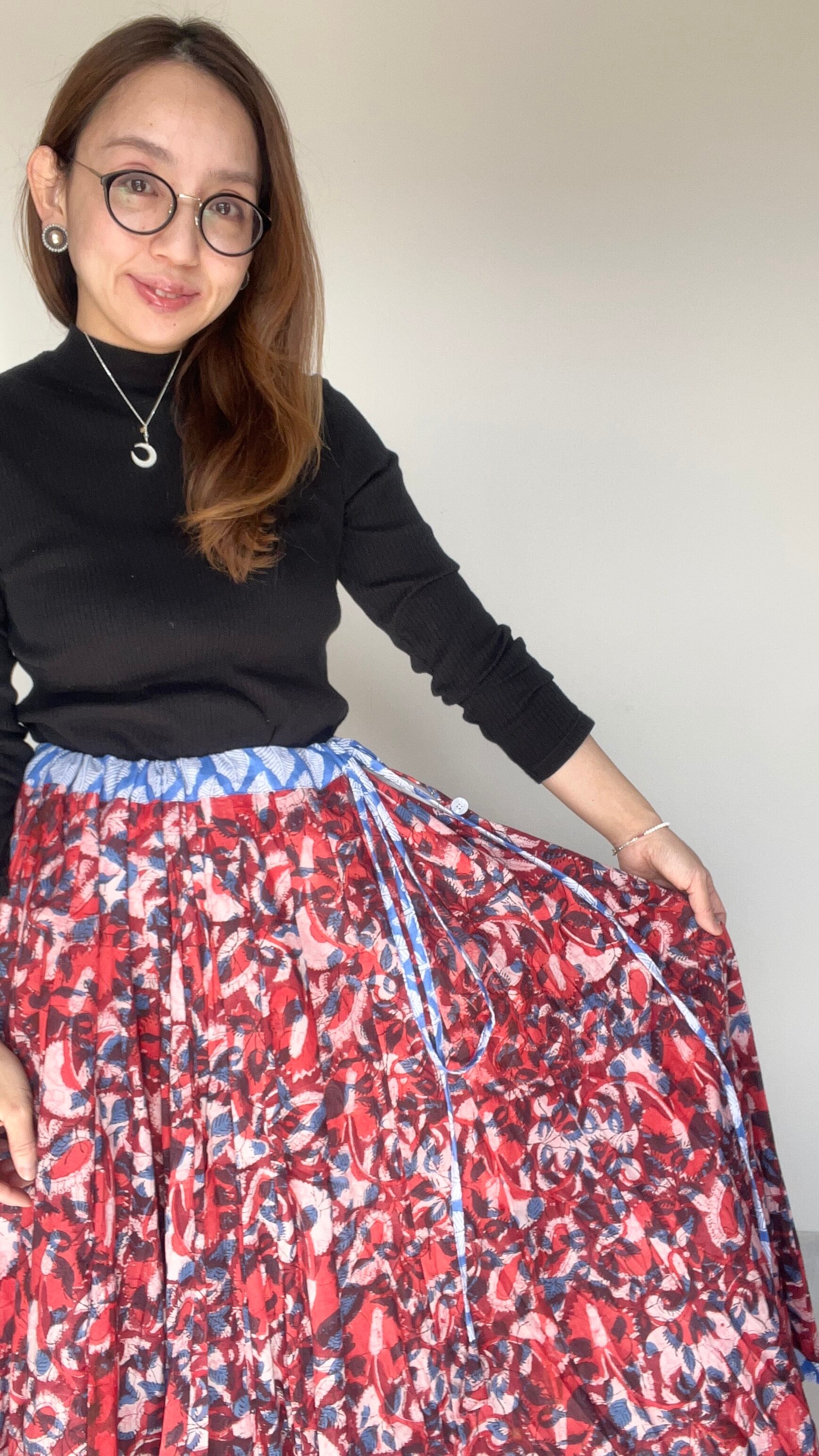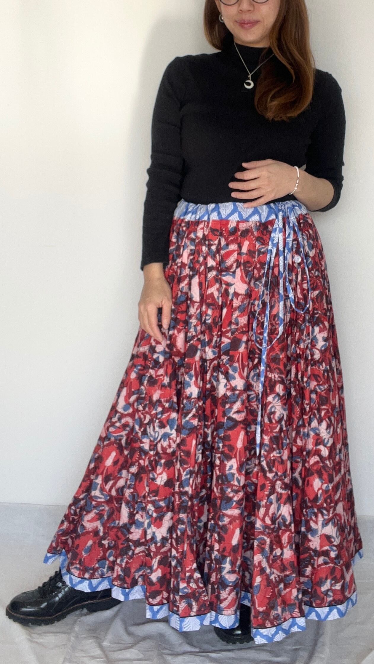 パネル状の生地を32枚はぎ合わせた、フルサークルのガーグラースカートです。